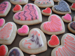 First, I just pipe the heart and fill it. This recipe will "go flat" and spread. Make sure you don't go too close to the edge. You need toothpicks if you want to add some pop. Here are some "tricks". I did these all really fast to take pictures - so apologies that they aren't very good:
